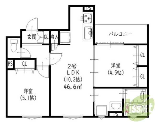 | 間取り | 2LDK(洋5.1 洋4.5 LDK10.2) | 築年月(築年数) | 2025年11月 新築 |