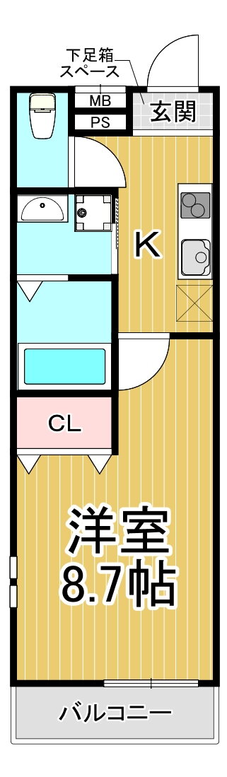 | 間取り | 1K(洋8.7) | 築年月(築年数) | 2026年1月 新築 |