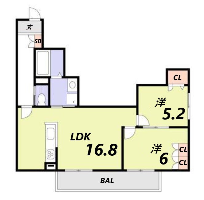| 間取り | 2LDK(洋6 洋5.2 LDK16.8) | 築年月(築年数) | 2026年1月 新築 |