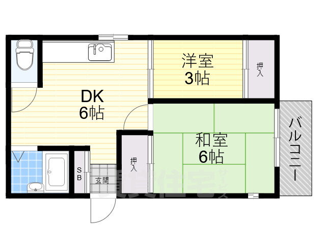 | 間取り | 2DK(和6.00 洋3.00 DK6.00) | 築年月(築年数) | 1985年5月(築40年8ヶ月) |