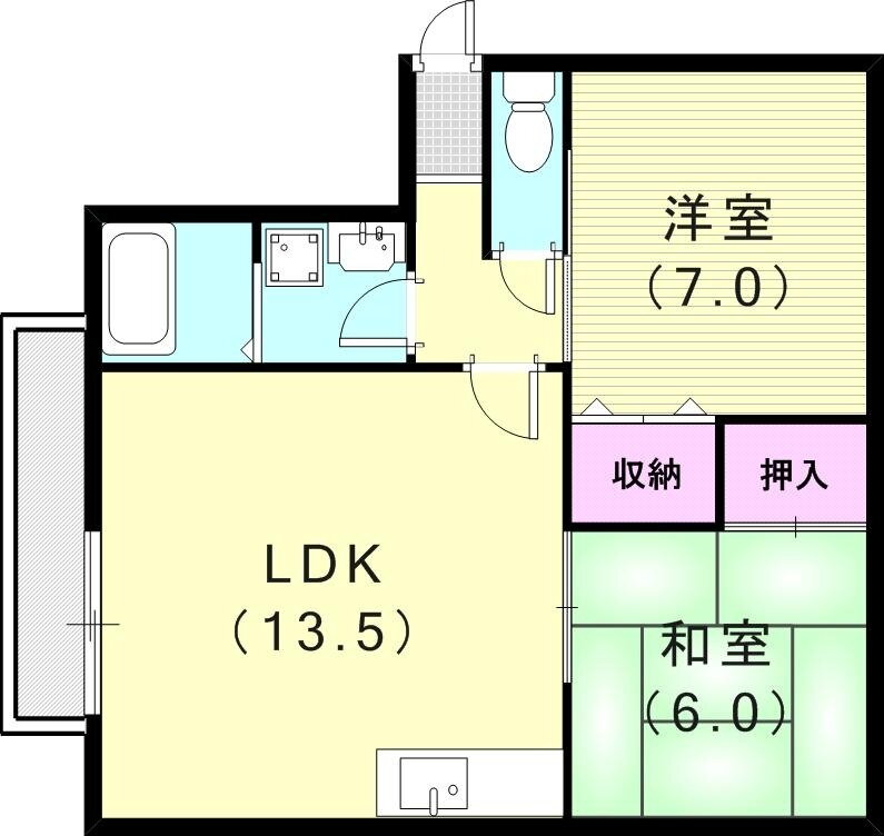 | 間取り | 2LDK(和6 洋7 LDK13.5) | 築年月(築年数) | 1997年8月(築28年5ヶ月) |
