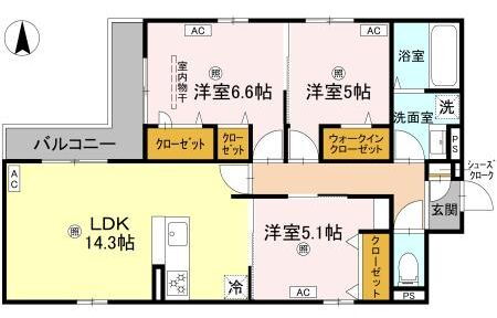 | 間取り | 3LDK(洋6.6 洋5.1 洋5 LDK14.3) | 築年月(築年数) | 2025年11月 新築 |
