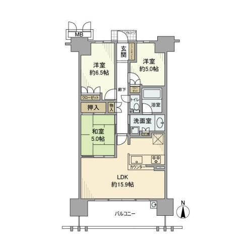 | 間取り | 3LDK(和5 洋6.5 洋5 LDK15.9) | 築年月(築年数) | 2014年6月(築11年6ヶ月) |