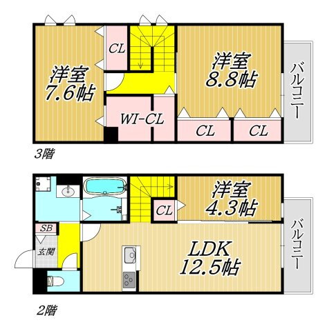 | 間取り | 3LDK(洋8.8 洋7.6 洋4.3 LDK12.5) | 築年月(築年数) | 2026年1月 新築 |