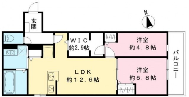 | 間取り | 2LDK(洋5.8 洋4.8 LDK12.6) | 築年月(築年数) | 2026年1月 新築 |