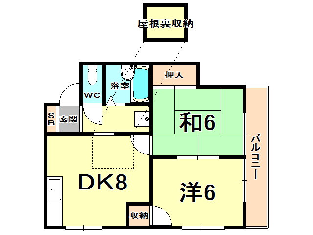 | 間取り | 2DK(和6 洋6 DK8) | 築年月(築年数) | 1990年12月(築35年1ヶ月) |