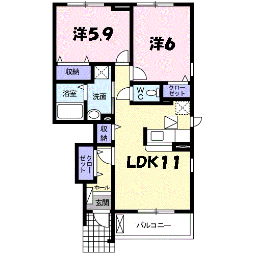 | 間取り | 2LDK(洋6 洋5.9 LDK11) | 築年月(築年数) | 2012年3月(築13年10ヶ月) |