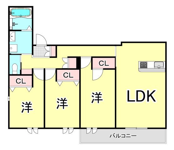 | 間取り | 3LDK | 築年月(築年数) | 2021年4月(築4年9ヶ月) |
