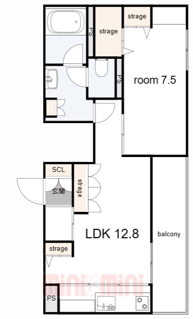 | 間取り | 1LDK(洋7.5 LDK12.8) | 築年月(築年数) | 2022年9月(築3年4ヶ月) |