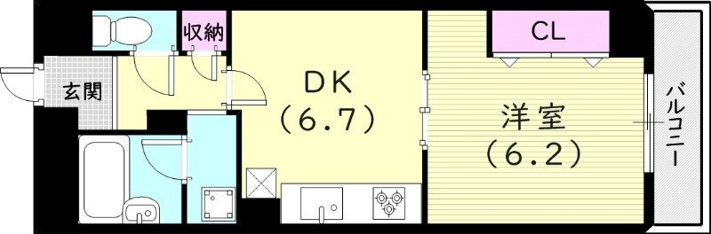 | 間取り | 1DK(洋6.2 DK6.7) | 築年月(築年数) | 1998年2月(築27年11ヶ月) |