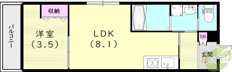 | 間取り | 1LDK(洋3.5 LDK8.1) | 築年月(築年数) | 2025年9月 新築 |