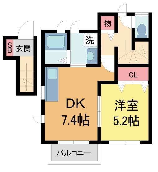 | 間取り | 1DK(洋5.2 DK7.4) | 築年月(築年数) | 2013年8月(築12年5ヶ月) |