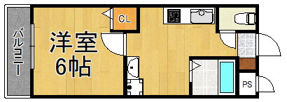 | 間取り | 1K(洋6.0) | 築年月(築年数) | 2004年4月(築21年9ヶ月) |