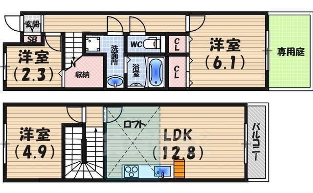 | 間取り | 3LDK(洋6.1 洋4.9 洋2.3 LDK12.8) | 築年月(築年数) | 2013年2月(築12年11ヶ月) |