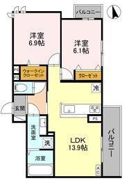 | 間取り | 2LDK(洋6.9 洋6.1 LDK13.9) | 築年月(築年数) | 2025年12月 新築 |