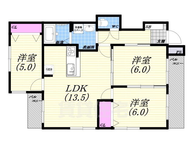 3LDK(洋6.00 洋6.00 洋5.00 LDK13.50) |