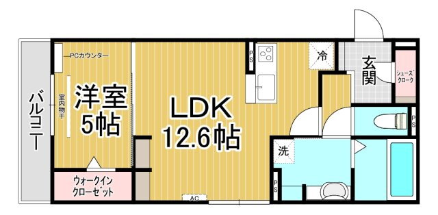 | 間取り | 1LDK(洋5.0 LDK12.6) | 築年月(築年数) | 2025年9月 新築 |