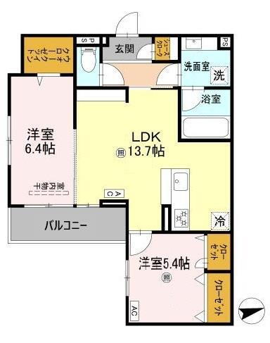 | 間取り | 2LDK(洋6.4 洋5.4 LDK13.7) | 築年月(築年数) | 2025年12月 新築 |