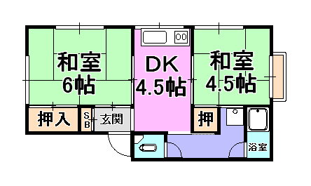 | 間取り | 2DK(和6 和4.5 DK4.5) | 築年月(築年数) | 1968年7月(築57年6ヶ月) |