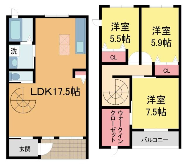 | 間取り | 3LDK(洋7.5 洋5.9 洋5.5 LDK17.5) | 築年月(築年数) | 2003年9月(築22年4ヶ月) |