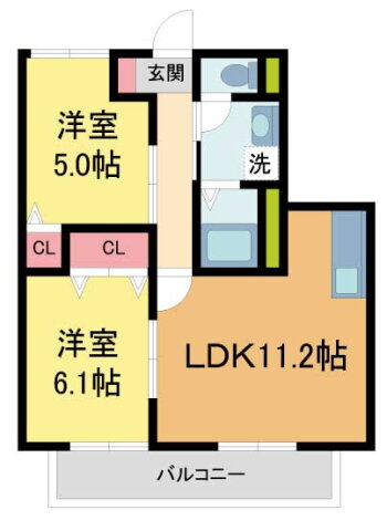 | 間取り | 2LDK(洋6.1 洋5 LDK11.2) | 築年月(築年数) | 2002年4月(築23年9ヶ月) |