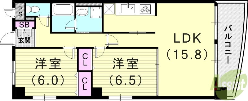 | 間取り | 2LDK(洋6.5 洋6 LDK15.8) | 築年月(築年数) | 1998年4月(築27年9ヶ月) |