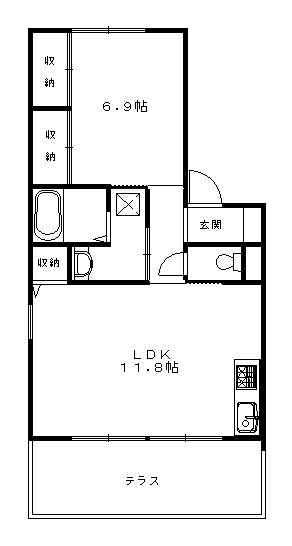 | 設備 | バス・トイレ別・トイレ・収納スペース・洗濯機置場・洗面所・BS端子・シャンプードレッサ・温水洗浄便座・システムキッチン・駐輪場・テラス・専用庭・都市ガス・浴トイレ別・洗面所独立・コンロ2口以上・シューズボックス・リフォーム・インターネット対応・室内洗濯機置き場 | ||||