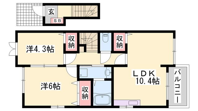 2LDK(洋6 洋4.3 LDK10.4) |