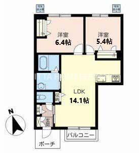 | 間取り | 2LDK(洋6.4 洋5.4 LDK14.1) | 築年月(築年数) | 2011年9月(築14年4ヶ月) |