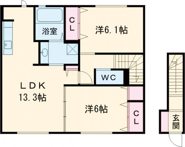 | 間取り | 2LDK(洋6.10 洋6.00 LDK13.30) | 築年月(築年数) | 2016年7月(築9年6ヶ月) |