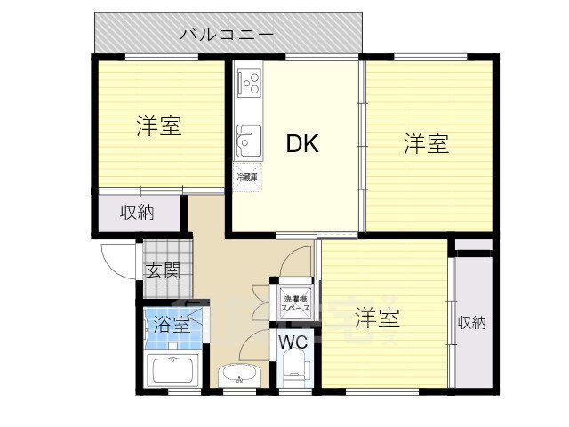 | 間取り | 3K(洋6.00 洋5.10 洋4.30 K4.30) | 築年月(築年数) | 1968年1月(築57年12ヶ月) |