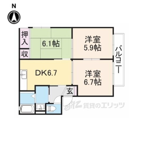 | 間取り | 3DK(和6.1 洋6.7 洋5.9 DK6.7) | 築年月(築年数) | 2002年5月(築23年7ヶ月) |