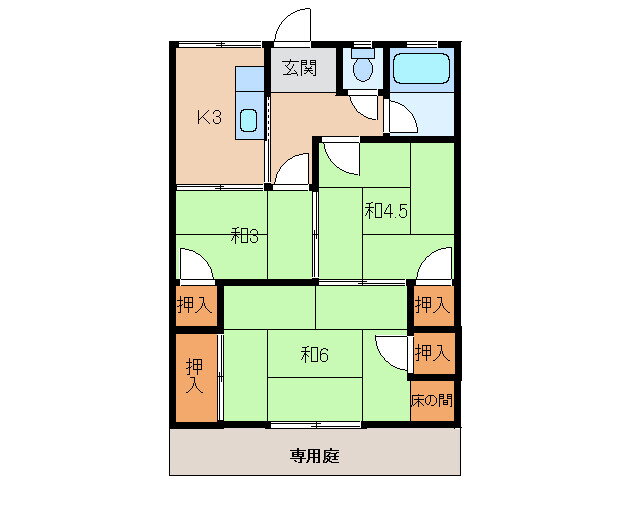 | 間取り | 3K(和6.0 和4.5 和3.0 K3.0) | 築年月(築年数) | 1979年1月(築46年12ヶ月) |