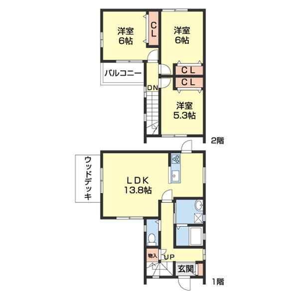| 間取り | 3LDK(洋6 洋6 洋5.3) | 築年月(築年数) | 2013年4月(築12年9ヶ月) |