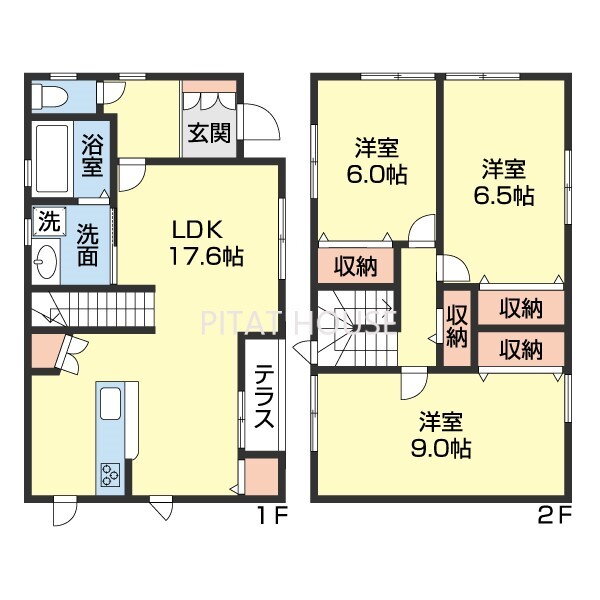 | 設備 | バルコニー・バス・トイレ別・トイレ・収納スペース・洗濯機置場・洗面所・フローリング・ウォークインクローゼット・温水洗浄便座・システムキッチン・カウンターキッチン・モニタ付インターホン・対面K・クローゼット・駐車場2台分・IHクッキングヒータ・浴トイレ別・洗面所独立・シューズボックス・室内洗濯機置き場 | ||||
