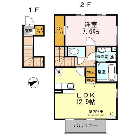1LDK(洋7.6 LDK12.9) |