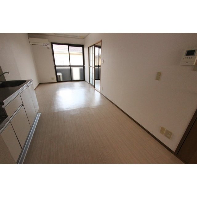 - エアコンがDKと洋室についています!! ガスコンロ、照明、TVモニターホン、シャワートイレ付きです!室内物干しもありますので雨の日でも洗濯物が干せますよ!!