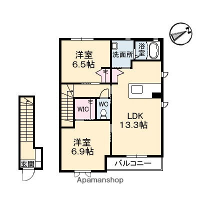 2LDK(洋6.9 洋6.5 LDK13.3) |