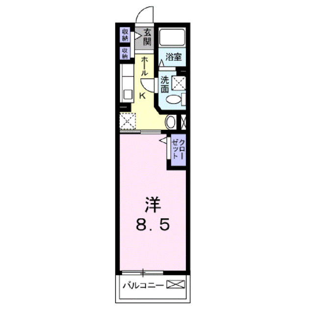 | 間取り | 1K(K8.5) | 築年月(築年数) | 2010年3月(築15年10ヶ月) |