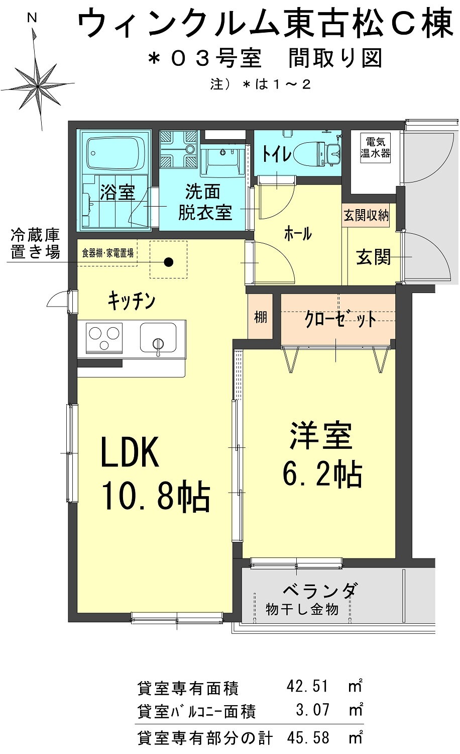 | 専有面積 | 42.51㎡ | 所在階/階数 | 1階/2階建 |