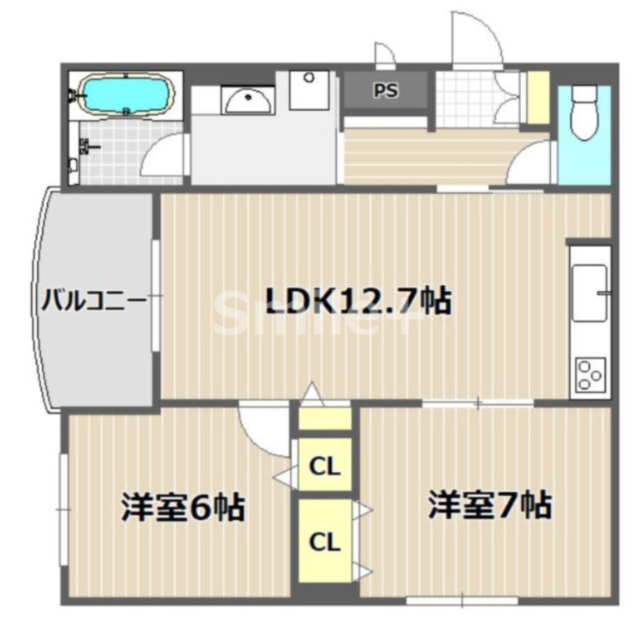 2LDK(洋7.0 洋6.0 LDK12.7) |