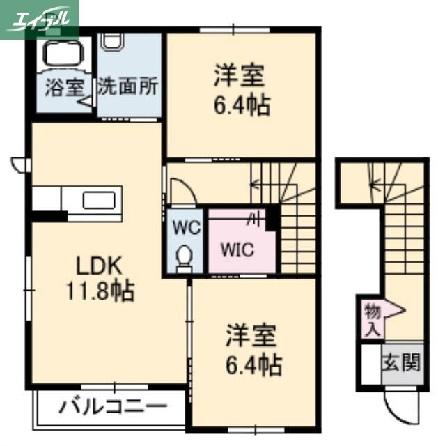 | 間取り | 2LDK(洋6.4 洋6.4 LDK11.8) | 築年月(築年数) | 2006年7月(築19年6ヶ月) |