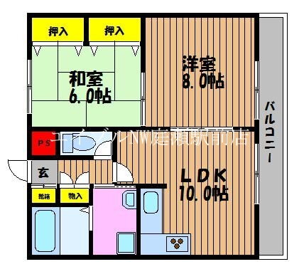| 間取り | 2LDK(和6 洋8 LDK10) | 築年月(築年数) | 2000年1月(築25年12ヶ月) |