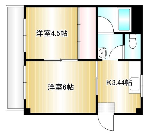 | 間取り | 2K(洋6 洋4.5 K3) | 築年月(築年数) | 1985年3月(築40年10ヶ月) |