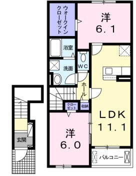 | 間取り | 2LDK(洋6.1 洋6 LDK11.1) | 築年月(築年数) | 2021年9月(築4年4ヶ月) |