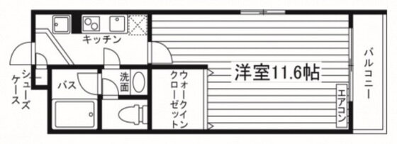 | 間取り | 1K(洋11.6 K0) | 築年月(築年数) | 2007年2月(築18年11ヶ月) |