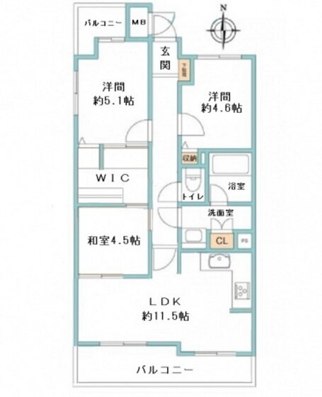 | 間取り | 3LDK(和4.5 洋5.1 洋4.6 LDK11.5) | 築年月(築年数) | 1998年9月(築27年4ヶ月) |