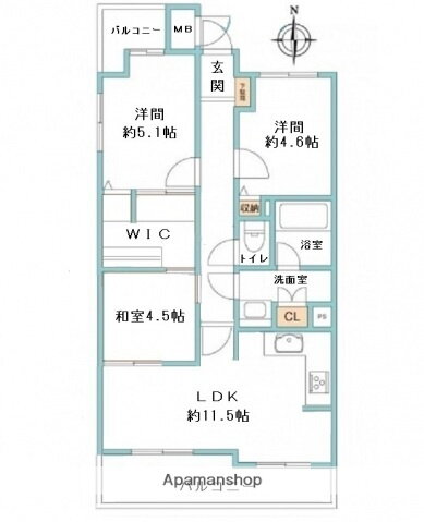 | 間取り | 3LDK(和4.5 洋5.1 洋4.6 LDK11.5) | 築年月(築年数) | 1998年9月(築27年4ヶ月) |