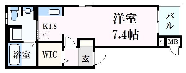 | 間取り | 1K(洋7.4 K1.8) | 築年月(築年数) | 2015年3月(築10年10ヶ月) |