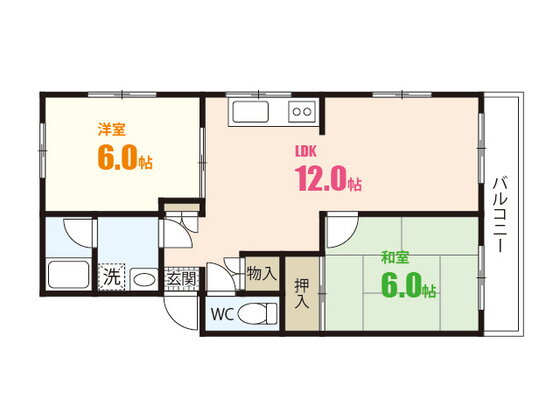 | 間取り | 2LDK(和6 洋6 LDK12) | 築年月(築年数) | 1987年2月(築38年11ヶ月) |